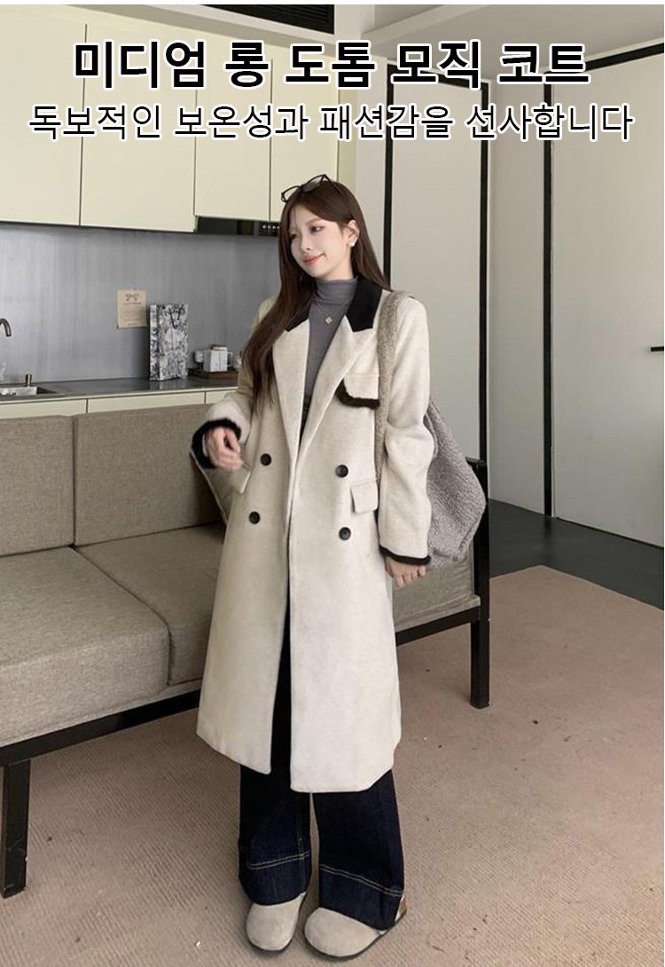 럭셔리 여성용 미디롱 코트